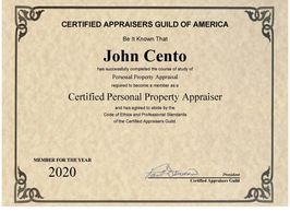 Completed the Certified Appraiser Guild of America's personal property appraisal certification program along with a peer-reviewed appraisal report in July 2018.